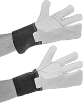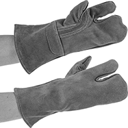 Use these mitts for welding jobs that don’t require high dexterity. Since they have fewer separated fingers than gloves, they block more heat, and they’re easier to slip on or off. They also reduce the risk of pinky shrink, which happens when heat causes a glove’s pinky area to shrivel. All have a separated index finger so you can squeeze the trigger of your welding gun.