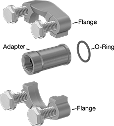 Combine an adapter with a two-piece pipe flange (sold separately) to build a customized flange connection. Also known as Code 61 or Code 62 split flanges, the two halves of the flange clamp around the adapter and bolt to another Code 61 or Code 62 flange. Flanges and adapters are 316 stainless steel which has excellent corrosion resistance.