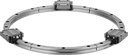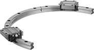 For smooth, accurate movement around curves and loops, these carriages have ball bearings that work well in high-speed, high-load applications. You'll often see these carriages and guide rails used to build assembly stations and other repetitive processes. Compared to roller and sleeve bearings, the ball bearings in these carriages operate with less friction, but they don't hold up as well as sleeve bearings in dusty and wet environments. The ball bearings don't have a cage, so they'll fall out if you remove the carriage from the guide rail.