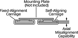 For a complete system, you’ll need a self-aligning carriage and rail on one side and a fixed-alignment carriage and rail on the other (all sold separately).