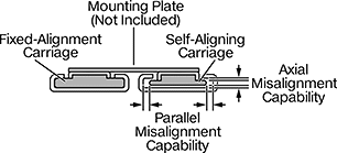 Misalignment Capability | Fixed-Alignment Zinc-Plated Steel Guide Rails | Self-Aligning Zinc-Plated Steel Guide Rails | ||||||||||||