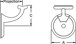 Style | Material | Appearance | (A) | (C) | Projection | Cap., lbs. | Mount Type | Mounting Fasteners Included | For Screw Size (No. of Mounting Holes) | Each | |