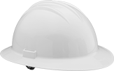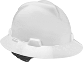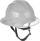 Hard hats with a full brim have a wide front-to-back brim that provides added protection against sun, glare, splash, and rain.