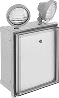 These lights are UL listed for Class I, Division 2, Groups A, B, C, and D for use in environments where ignitable concentrations of hazardous material occur infrequently, such as in the case of an accidental spill or failure of a ventilation system. They withstand acetylene, hydrogen, ethylene, and propane. Lights can be hardwired to operate on any of the voltages listed. They have a low-voltage disconnect so they won’t drain the backup battery. Use the test switch to check that the heads and battery are working properly. Heads adjust to any angle to direct light where needed. They cannot be sold to the listed areas due to energy efficiency requirements.