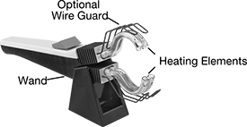 Create a circle of radiant heat to install heat-shrink tubing, seal heat-shrink wire splices, and bend plastic tubing. Use in applications where blowing air is not practical, such as in clean rooms and other controlled environments. Wands can be hand held or bench mounted with the included stand. Height does not include the stand.