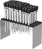 | 50 | 5 3/4" Lg. Chip Lifter Hex Screwdrivers: 0.7 mm, 0.9 mm, 1.3 mm, 1.5 mm, 2 mm, 2.5 mm, 3 mm Hex Screwdrivers: 1/16", 3/32", 7/64", 1/8" Nutdrivers: 1.5 mm, 2 mm, 2.5 mm, 3 mm, 3.5 mm, 4 mm, 4.5 mm, 5 mm, 5.5 mm, 1/8", 5/32", 3/16", 1/4" Phillips Screwdrivers: No. 000, No. 00, No. 0, No. 1 Slotted Screwdrivers: 0.031", 0.039", 0.047", 0.059", 0.079", 0.098", 0.118", 0.138", 0.157" Torx Screwdrivers: T1, T2, T3, T4, T5, T6, T7, T8, T9, T10, T15, T20 | Chrome-Plated Steel | Plain | Metal Stand | Static Dissipative | 1× 10^6Ω⋅cm to 1× 10^9Ω⋅cm | IEC 61340-5-1 | 0000000 | 0000000 | ||||||||||||||||||||||||||||||||||||||||||||||||||||||||||||||||||||||||||||||||||||||||||