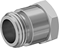 Slide a high-pressure hose nipple for compressed gas into one of these nuts to connect a pipe to the inlet of a pressure regulator. They are also known as CGA (Compressed Gas Association) nuts and inlet nuts.