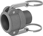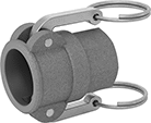 Made of metal, these couplings have better durability than plastic cam-and-groove couplings. A complete coupling consists of a plug and a socket (both sold separately) that allow you to quickly connect and disconnect medium-to large-diameter hose lines. To connect, insert the plug into the socket and press the levers down. The levers fit snugly into the groove on the plug’s body and force the plug against the gasket to form a tight seal. To disconnect, lift both levers and pull out the plug. Couplings are compatible with Andrews, Dixon, Ever-Tite, and PT cam-and-groove couplings.