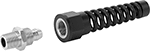 Eliminate sharp bends at the end of your air and water hose—these fittings have a built-in kink absorber. The kink absorber reduces strain on your line, preventing damage. To install, slide the kink absorber onto your hose then push the barbed end of the fitting into the hose. The fitting's barbed end also has threads that connect the kink absorber, hose, and fitting all together. As you thread on the kink absorber to the fitting, it compresses against the hose, forming a strong seal.