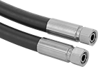 For frequent connections, this hose has a socket end that's faster to connect and disconnect than a threaded fitting. This hose bends twice as sharply and resists wear and tear 80 times better than our basic hydraulic hose, thanks to its two layers of blended rubber. Attach it to equipment that moves or route it through tight spaces to move hydraulic fluid between pumps, cylinders, and other parts of your hydraulic system. Reinforced by two steel wire braids, it’s strong and flexible even under pressure. You can trust this hose to handle the pressures, temperatures, and fluids involved in most hydraulic applications because it meets ISO 11237-1 standards. The cover also meets MSHA (Mine Safety and Health Administration) standards for flame resistance.