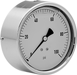 A liquid-filled dial reduces needle flutter for precise readings in high-vibration applications. Gauges are commonly used with pumps, filters, regulators, and in process lines to measure and display pressure. Mount them with the dial face upright.