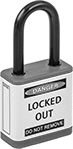 1 1/2" | 3/4" | 1/4" | Plastic-Coated Hardened Steel | 1 3/4" | 1 1/2" | 3/4" | __ | Danger—Locked Out Do Not Remove | 1 | OSHA Compliant 29 CFR 1910.147 | 0000000 | 00000 | |