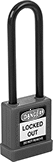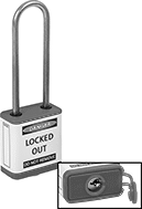 With an extra-long shackle, these padlocks can secure equipment locked out by oversized hasps, chains, and other devices. They come in a variety of eye-catching colors. To help you follow lockout identification practices, you can assign colors to individuals or functions. For example, use blue for plumbing and red for electrical. Use these padlocks with a lockout device to comply with OSHA 29 CFR 1910.147 standards for safe lockouts.