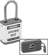 Lock out equipment outdoors to prevent accidental startups during maintenance. These padlocks come in a variety of colors that grab your attention and display a warning label that alerts you to locked-out machines. Assign colors to individuals or functions, such as blue for plumbing and red for electrical, to help meet lockout identification standards. Use them with a hasp, chain, or another lockout device to comply with OSHA 29 CFR 1910.147 standards for safe lockouts. To confirm equipment remains securely locked out during maintenance or repair, these padlocks retain the key in the cylinder until the shackle is relocked. Choose them if you need locks that each open with a different key. All have random key numbers.