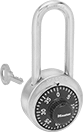 With a fully enclosed shackle on the back, these padlocks are more secure than standard padlocks. Also known as hockey puck locks, they prevent bolt-cutting and prying attempts, so they’re often used on transport vans. Set your own combination and change it at any time. Not only is the steel lock body hardened for strength, it’s plated with chrome for added corrosion resistance. A metal cover keeps out water and debris to protect the rolling digits from freezing, corroding, or jamming.