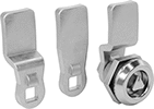 Designed for smaller-than-standard-diameter through holes, these locks are often installed in cabinet doors. They open with a triangle key (sold separately), so they’re more secure than locks that open with a hex or slotted driver. They match a keying system that is common for industrial enclosures, control cabinets, and other machinery, so you can keep a simple keying system around your facility. Their concealed design stops others from tampering with them using pliers. Also known as quarter-turn locks, these locks have an attached arm that rotates 90° to lock your enclosure. A gasket prevents water, dust, and dirt from getting into an enclosure through the lock. This helps you maintain an IP65 and NEMA 4 rating in your sealed enclosure. All come with multiple cams to accommodate different latching distances.