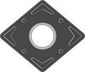 Negative-rake inserts have a 90° edge and sit at an angle in the holder to provide a strong cutting force for heavy duty applications. They have cutting edges on both sides for twice the life of comparable positive-rake inserts.