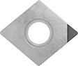 Made for cutting fiberglass, carbide, and ceramic, these inserts have a PCD (polycrystalline diamond) edge that’s extremely hard and resistant to heat and wear. You can also use them on nonferrous metals like aluminum, brass, or bronze. They’re designed for continuous cutting conditions, which means the insert stays in constant contact with the workpiece. Use these inserts at the end of your turning process to finish workpieces—they remove minimal material and leave a smooth surface finish. They come factory sealed from the manufacturer for maximum traceability. Install them into a matching holder.