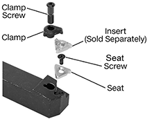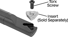 Pair these S-code holders with a compatible carbide insert (sold separately) to cut threads inside a workpiece. Inserts sit lower in these holders than in other types of holders, which gives you extra clearance for threading close to a shoulder. Their clamp also holds the insert more securely, so you can create more precise threads. Fit these holders directly into a lathe tool post or holder—no tool block needed. They cut in a right-hand direction, meaning the holder moves from right to left toward the lathe chuck. They’re also known as indexable insert holders.