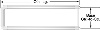 O'all Lg. | Base Ctr.-to-Ctr. | Equiv. Fluorescent Bulb Wattage | Light Appearance | Wattage | Rated Life, hrs. | Est. Yearly Energy Cost, $ | Brightness, lumens | CRI | Bulb Material | Light Technology | Pkg. Qty. | Pkg. | |