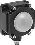 The quick-connect four-pole M12 plug on these lights makes them easy to hook up and configure. Mount the male thread on the bottom of the light through a hole and then secure using the included nut and sealing gasket. Lights have LED bulbs for years of maintenance-free operation. They meet IP65 for protection from washdowns.
