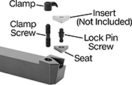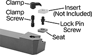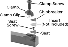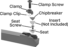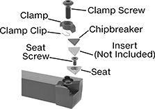 For Insert | Shank | Replacement Clamps | Replacement Clamp Clips | Replacement Clamp Screws | Replacement Seats | Replacement Seat Screws | Square Chipbreakers | |||||||||||