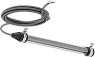 Similar in function to tubular machine lights, except strip machine lights have a flat lens that directs light downward. These lights are sealed to keep out fluid, chips, and shavings, so they can be mounted directly inside machines. With built-in LEDs, these lights last longer, are more efficient, and generate less heat than other light technologies. They produce a cool or daylight appearance that highlights white/blue tones, which is good for inspecting.