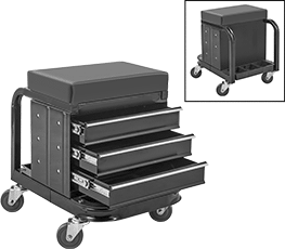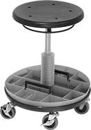 Styles D-H swivel so that you can work on multiple surfaces without having to stand up. Style G have a removable storage tray with dividers to organize tools and supplies. Style H have a steel shelf below the seat to keep tools and parts within reach.