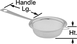 Dia. | Ht. | Opening Wd. | Size | Wire Dia. | Handle Lg. | Cap., lbs. | Max.Temp., °F | Material | Appearance | Features | Each | |