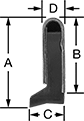 Inside Leg Lg. | (A) | (B) | (C) | (D) | Backing Material | Wiper Blade Material | Each | |