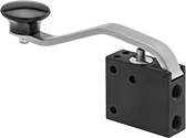 Manually control these valves by pushing or turning the actuator. Also known as 3-way or 3/2 valves, they create one action, such as extending a cylinder. They direct airflow from the inlet to your equipment and exhaust return airflow to create motion. In the off position, they exhaust air pressure from the system, allowing equipment to reset so the action can be repeated. Valves without an exhaust connection exhaust air to the atmosphere.