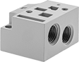 Manifold-mount valves plug into a manifold (sold separately) to create multiple actions from a single pressure input. Manifolds with multiple exhaust ports have one set of inlet and exhaust ports on each side, so they can be strung together in a series. When using a single manifold, cover the ports on the side you are not using with plugs (sold separately).
