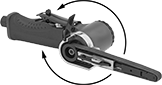 The narrow belt is good for sanding in tight spaces. These sanders have an arm that pivots 360°. Sanding belts are sold separately.