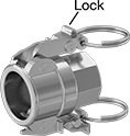 Made of metal, these couplings have better durability than plastic cam-and-groove couplings. A complete coupling consists of a plug and a socket (both sold separately) that allow you to quickly connect and disconnect medium-to large-diameter hose lines. To connect, insert the plug into the socket and press the levers down. The levers fit snugly into the groove on the plug’s body and force the plug against the gasket to form a tight seal. To disconnect, lift both levers and pull out the plug. Couplings are compatible with Andrews, Dixon, Ever-Tite, and PT cam-and-groove couplings.