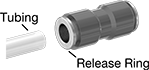 Insert tubing into these fittings and an internal gripping ring and O-ring hold the tubing tight. They are also known as instant fittings. To disconnect, push on the release ring and pull the tubing out of the fitting. Fittings have good corrosion resistance. Use them in low-pressure applications.
