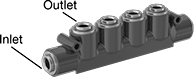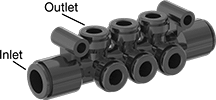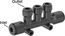 Number of Inlets | For Tube OD (Inlet) | For Tube OD (Outlet) | Material | Color | Release Ring Color | Max. Pressure | Mount Type | Mounting Fasteners Included | Each | |