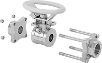 Valves with actuator mounts can be equipped with air-powered or electric actuators using the mounting holes. This allows you to switch them from manual to automatic operation.
