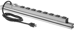 Add electrical outlets to workstations with these outlet strips that mount on T-slotted rails. They have surge suppression to protect sensitive electronics from voltage spikes.