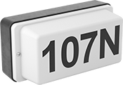 Customize these lights to label doors or areas of a building. They’ll display up to four letters and numbers horizontally, or two vertically. The lens is made of polycarbonate to resist impact. ETL listed for wet locations, these lights are sealed to keep out humidity and dripping, splashing, and falling liquids.