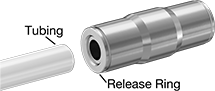 Made entirely of stainless steel, these fittings have the best corrosion resistance of all our metal push-to-connect fittings. Also known as instant fittings, they connect to tubing with a push, and an internal gripping ring and O-ring hold the tubing tight. To disconnect, push on the release ring and pull the tubing out of the fitting.