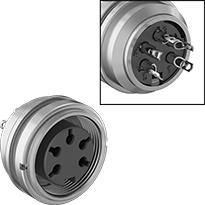 Receptacles thread into panels and walls, so they work well in stationary or permanent installations. Receptacles with epoxy-coated zinc housing resist corrosion and weld-slag for use in harsh environments.