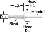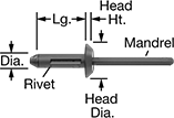 For Blind Rivet Type | For Rivet Dia. | Dia. | Lg. | Lg. | Each | |