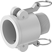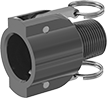Made of polypropylene, these couplings are lighter in weight than metal cam-and-groove couplings and have good abrasion and corrosion resistance. A complete coupling consists of a plug and a socket (both sold separately) that allow you to quickly connect and disconnect medium-to large-diameter hose lines. To connect, insert the plug into the socket and press the levers down. The levers fit snugly into the groove on the plug’s body and force the plug against the gasket to form a tight seal. To disconnect, lift both levers and pull out the plug.