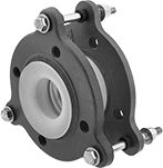 The PTFE body on these expansion joints has a super-smooth surface that stands up to corrosive chemicals. Joints have a triple-bulb design that provides excellent vibration absorption, reducing stress on your piping system. The flanges mate with a same-size flat-surface Class 150 flange without the need for a gasket. Limit rods are attached to the flanges to prevent overextension.