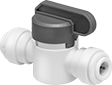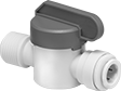 Insert your tubing into the fittings of these valves with just a push—the internal rings will grip it tight. Made of plastic, these valves are a lightweight alternative to metal valves. All meet NSF/ANSI 61 for safe use with drinking water. Since they have a small, short handle, they can fit into tight spots and sit side by side.