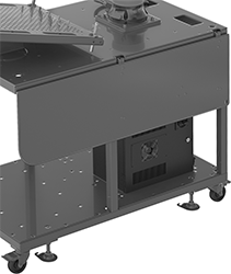 Mount catch pans to the bottom of your platforms to keep coolant, shavings, and other runoff from dripping onto the floor. They slide in and out of their mounting bracket for easy cleaning and disposal.
