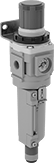 A filter and regulator joined top-to-bottom, these filter/regulators trap particles and maintain pressure in your compressed air line. They connect to other SMC units of the same series with joiner clamps (sold separately), so you can customize your air preparation system. The regulator is relieving, so it will exhaust when the downstream pressure exceeds the set pressure.