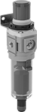 A filter and regulator joined top-to-bottom, these filter/regulators trap particles and maintain pressure in your compressed air line. They connect to other SMC units of the same series with joiner clamps (sold separately), so you can customize your air preparation system. The regulator is relieving, so it will exhaust when the downstream pressure exceeds the set pressure.