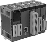 These PLCs support up to 88 inputs and outputs—enough to automate lighting or HVAC controls. They’re also known as smart relays. They have digital relay outputs that are ideal for loads that switch a few times per minute, such as compressors. However, they’re not designed for devices that switch multiple times per second, such as stepper motor drivers. Connect these PLCs to your Ethernet network to control devices anywhere in your facility. They use an open communication protocol, so you can mix and match devices from different manufacturers. Mount them to 35 mm DIN rail in your electrical cabinet.