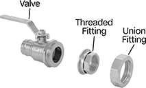 Valves with a threaded union are easy to install and remove without disrupting your line. They’re great for systems that need regular cleaning or maintenance. Just twist the union fitting to connect or disconnect—no need to turn the whole valve. The union fitting slides over your pipe, and the threaded fitting sits inside. The threads are galvanized steel to prevent corrosion when joining different metals, such as copper tubing to galvanized steel fittings often found on hot water heaters.